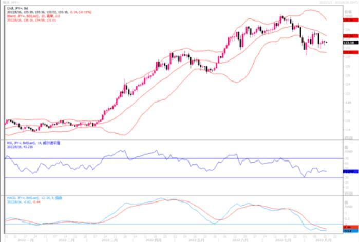 美元/日元走势再次与美债收益率走势挂钩,下行空间暂时有限。目前为止亚洲盘波动区间在133.05-43,上日为132.56-133.60。美债收益率成为走势关键,虽略显沉重但仍持稳,两年期美债收益率报3.178%,10期美债收益率报2.778%,美元/日元也稳守在132.06-135.43区间内,100和55日均线分别在下档及上档形成铁板,100日均线日均线。目前日元空头头寸大幅缩减,回补需求有所提升。随后若无重大消息刺激,料美日走势仍将跟随美债收益率的变化而动,且波动区间暂时仍只能限制于130.00-135.00之间。